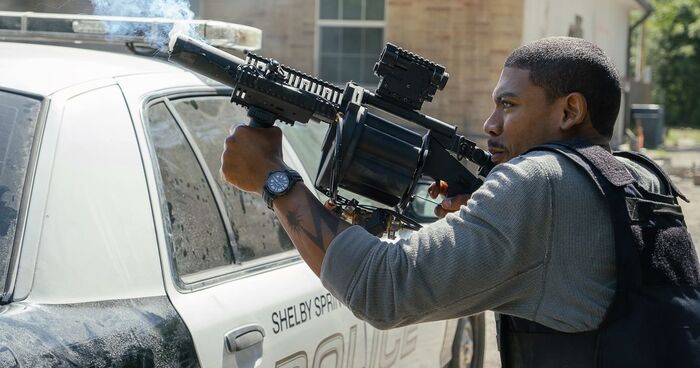 Вот этот бандит Александр на снимке в исполнении Дэниэла Болдуина может быть убит только если выстрелить ему в голову. Что потом и сделают друзья во время финальной разборки на «кладбище военных самолётов».
