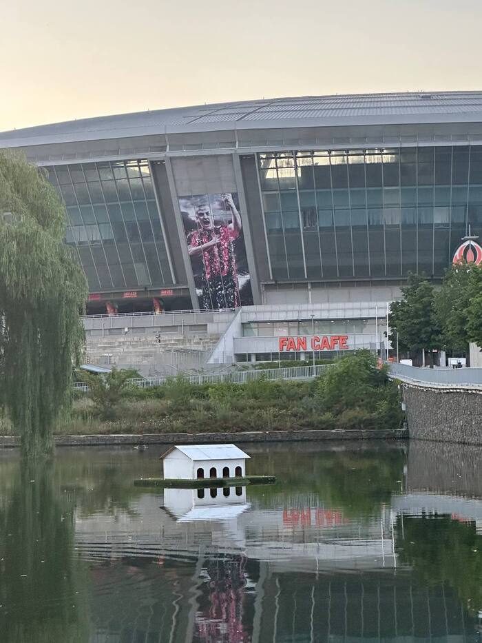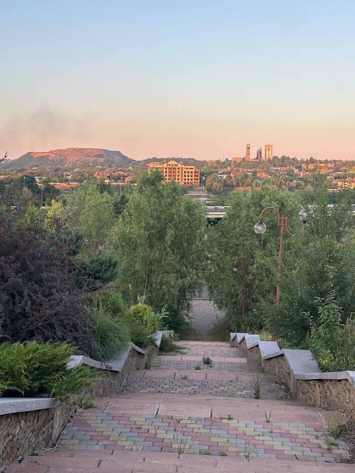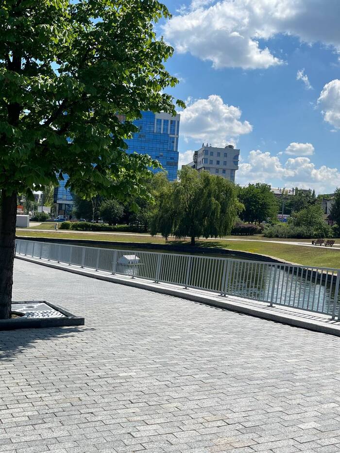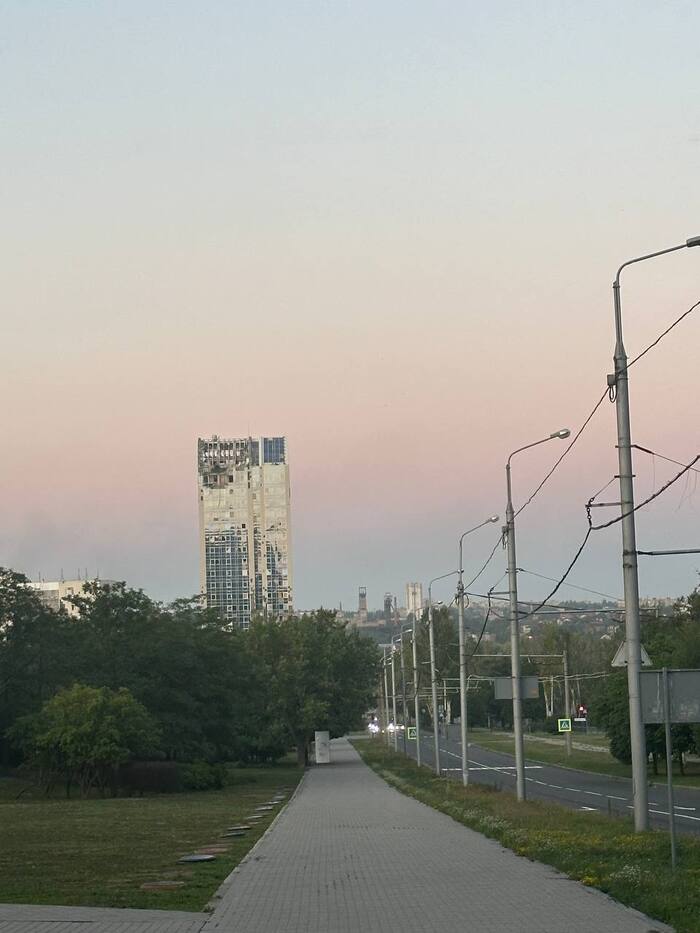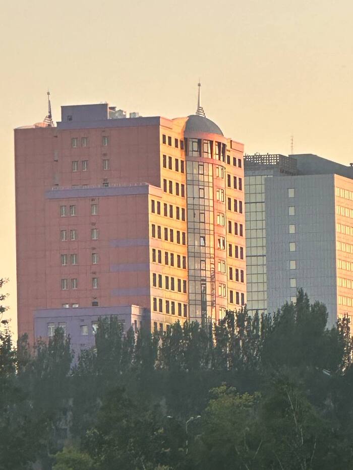 Что интересно, вокруг стадиона множество разрушений. Разрушен находящийся в непосредственной близости Дворец Молодёжи "Юность", в руинах Выставочный Центр " Декор Донбасс". Страшно всё это. Растения тоже пострадали. Дорогие деревья, высаженные вокруг, постепенно сохнут, газон стрижется лишь с одной "парадной стороны". Автополив не включается, мяч-фонтан стоит без воды, но хоть относительно цел. Всё это эхо войны, понятно, во время обстрелов не до газонов и декоров, но много где порядок поддерживается. Следы обстрелов кругом, кое-что сфотографировала, бегло проходя мимо. Удручающе... Особенно мне, кто помнит его во всей красе. Но уверена, война закончится, и я снова приду на матч на "Донбасс Арене". И деревья будут вокруг, берёзы, кстати, неприхотливы, и такие красивые!) И будет команда " Донецкий Шахтёр ", а " Шахтар" — они пусть сидят в своём Львові. Сами уехали. Их выбор.
