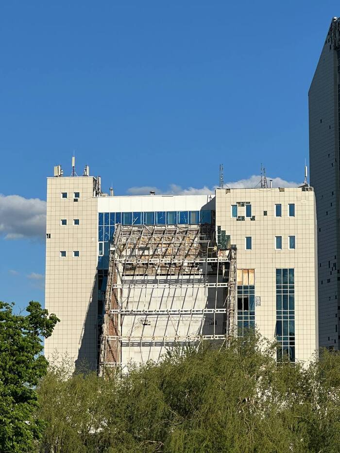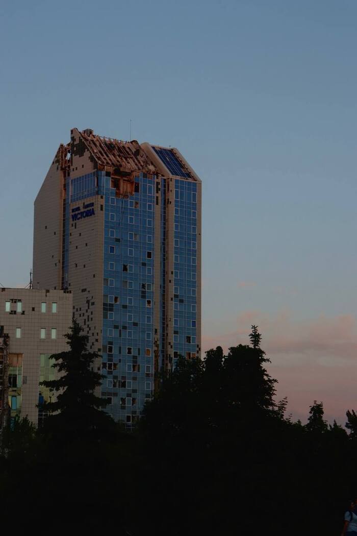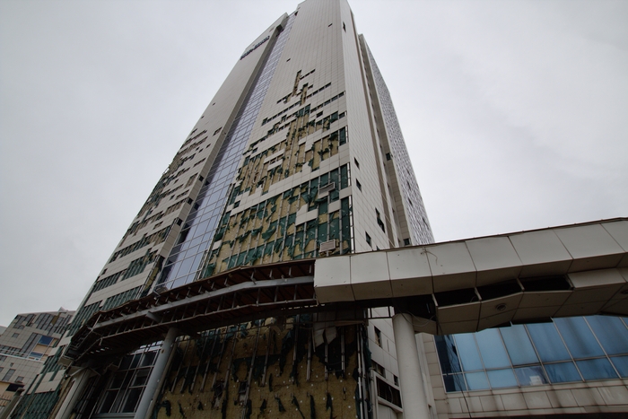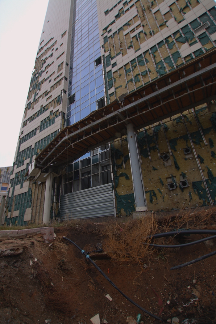 Это гостиница, так же пострадала от обстрелов, находится неподалеку от Донбасс Арены, фотографировать это место, оказывается нельзя, в чем причина я не знаю, но вооруженный человек в форме, чуть не отобрал карту памяти, почему то после того, как он узнал, что я из Питера, разрешил оставить фото, но попросил не выкладывать эти фото сразу, вот я как и обещал, выкладываю их спустя больше чем месяц.