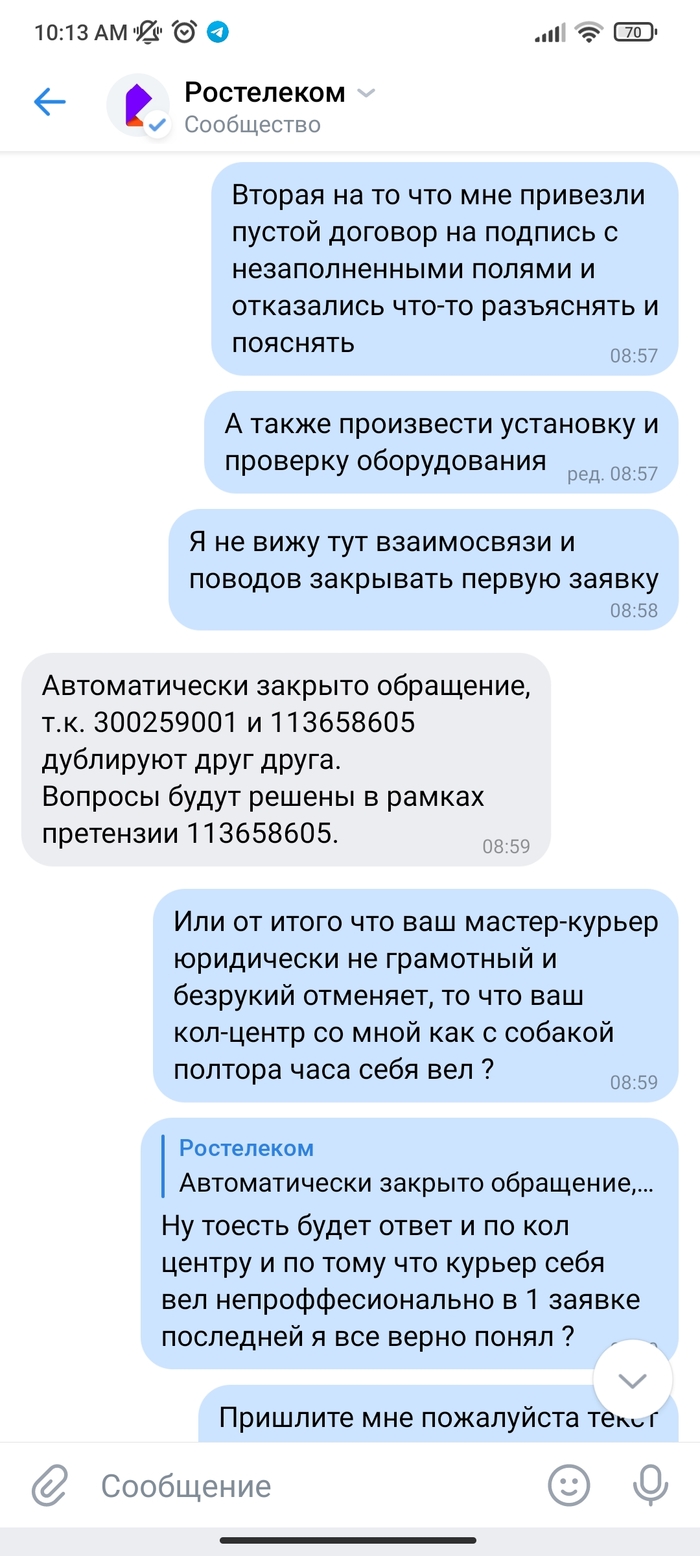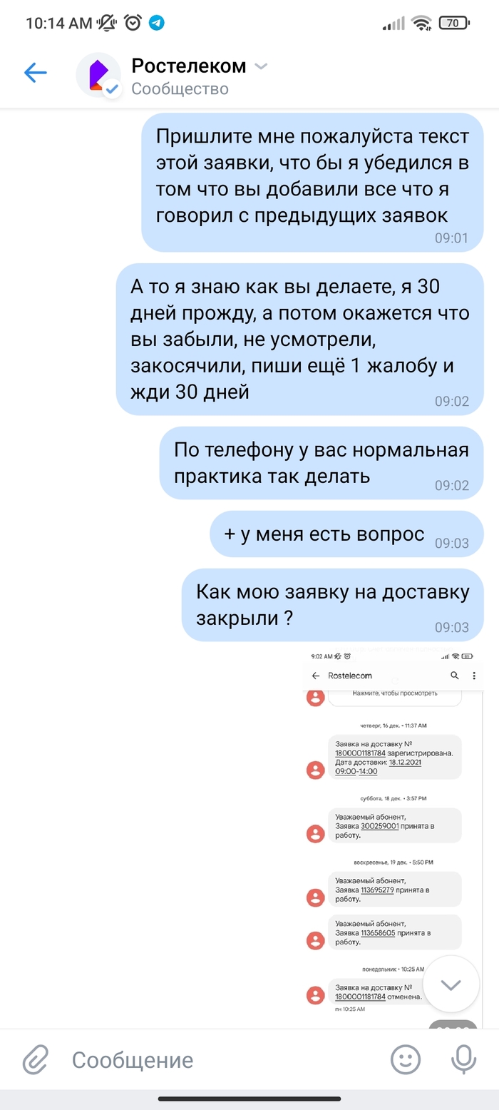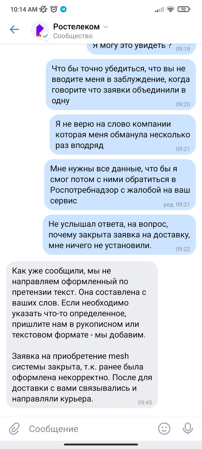 А так же меня интересовал вопрос, почему мою предыдущую заявку на доставку закрыли, хотя я не ощущаю у себя ног меш роутера и подключенной услуги? На него мне тоже не дали ответ.