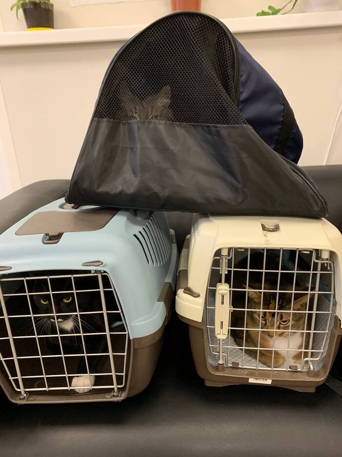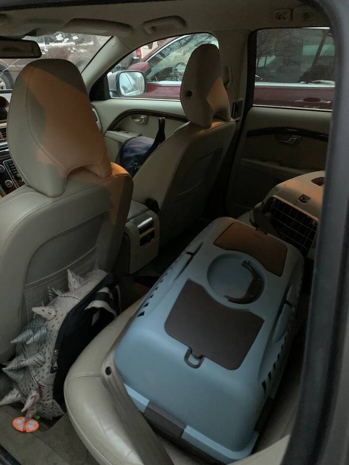Всех запихали в машину, было около 9 утра. Старший в мягкой тканевой переноске - это оказалось очень удобно на процедурах. Обычно и Гадя, и Кусама в машине исполняют песни и пляски народов Севера, но на этот раз Кусец вообще не особо соображала, куда ее тащат эти подозрительные котокрады и котоеды, а Гадислав вопил чисто для проформы, чтобы мы не забывали, что он тут есть, УООООООУ донор едет едет сквозь снежную равниииинуууу.