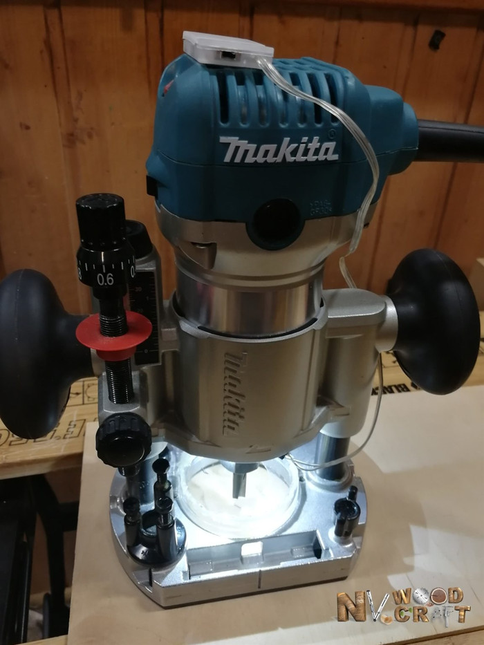 Компания Makita производит замечательный фрезер RT0700CX2, который может быть и кромочником, и погружным. Фрезер, при своей небольшой мощности в 700W позволяет выполнять массу операций. Но, отсутствие подсветки на погружном основании создает некоторые трудности. В этой статье покажу как устранить этот недостаток.