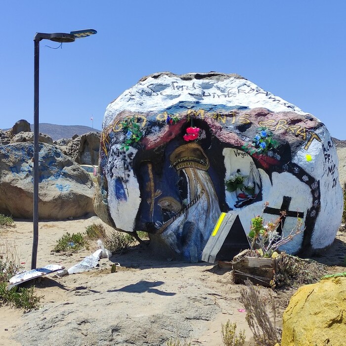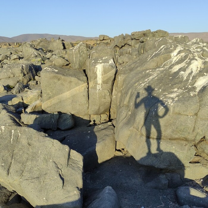 Тем временем Атакама совсем потеряла признаки жизни. Ни кустов, ни кактусов. Только песок, камни разных цветов и шахты. Тяжёлая тут жизнь, подумал я, как вдруг увидел на обочине лохматого мужика, ужинавшего на пороге своего сарая из какого-то мусора. Джуниор пояснил: это своего рода отшельник, он живёт здесь уже много лет. Прямо посреди пустыни. Известный персонаж.