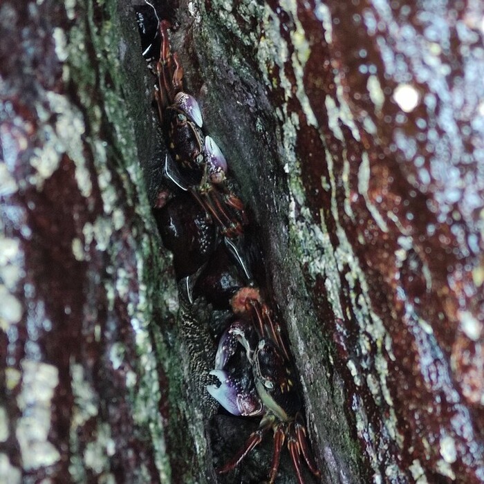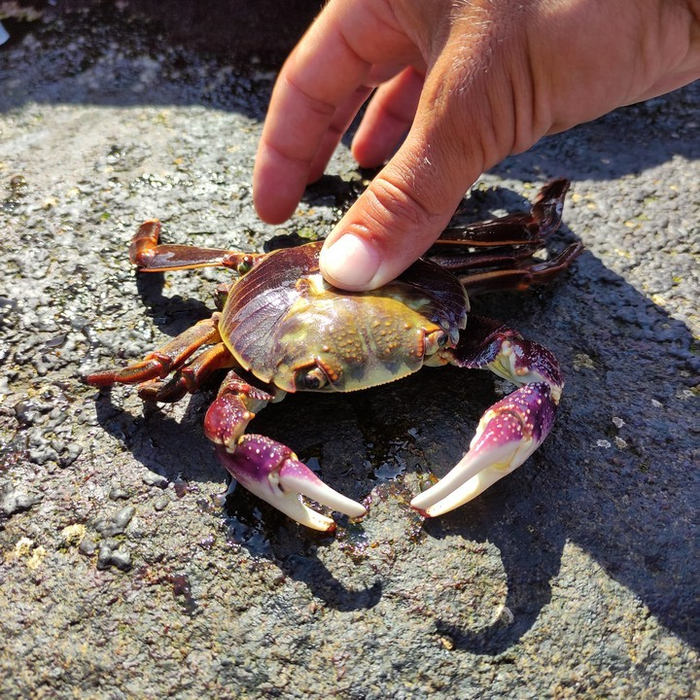 А я утоляю азарт и ловлю местного краба. Какой красавец! С фиолетовым отливом.