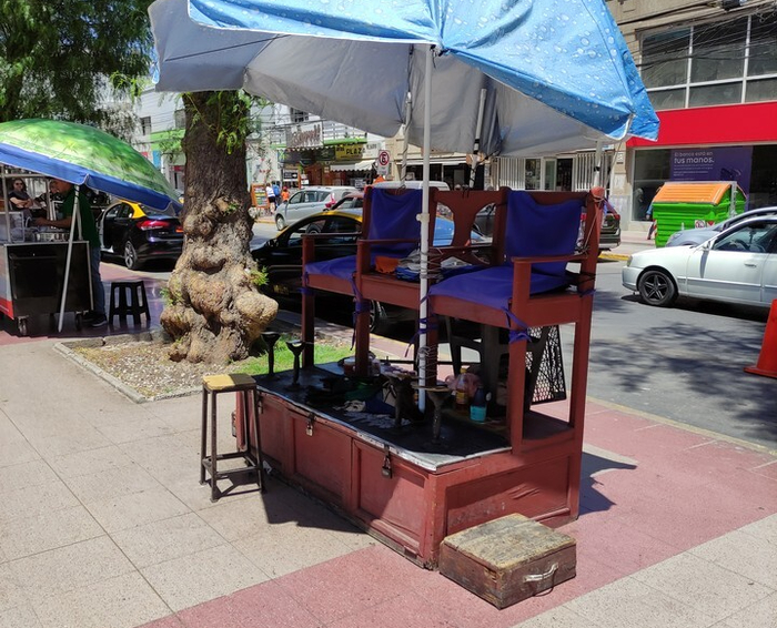 Приглядываю парк в центре Копьяпо. По пути — настоящий трон для тех, кто хочет почистить обувь. Такое в Южной Америке пользуется популярностью повсеместно.