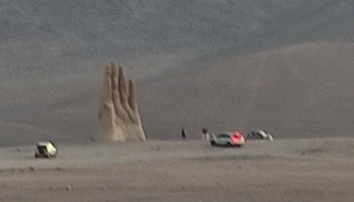 По пути встречаем одну из главных местных достопримечательностей – 11-метровую железобетонную скульптуру «Рука пустыни» (исп. Mano del desierto), символизирующую уязвимость человека, одиночество и горе. Джуниор предлагал съехать с дороги и подъехать поближе прямо на фуре, но я посчитал это излишним, фотографии я смогу найти и в интернете. Общение – главная ценность.