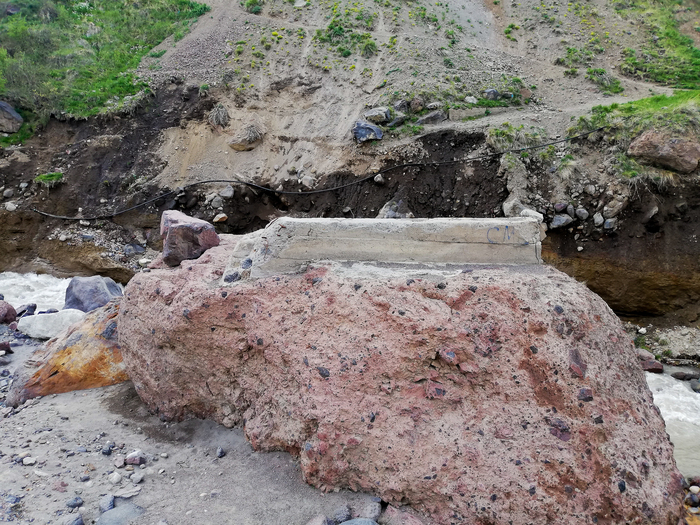 Необычный камень, наверху которого бетон. Следы древней, более мощной цивилизации. Интересно частью чего это было? Дома который смыло селем выше по течению?