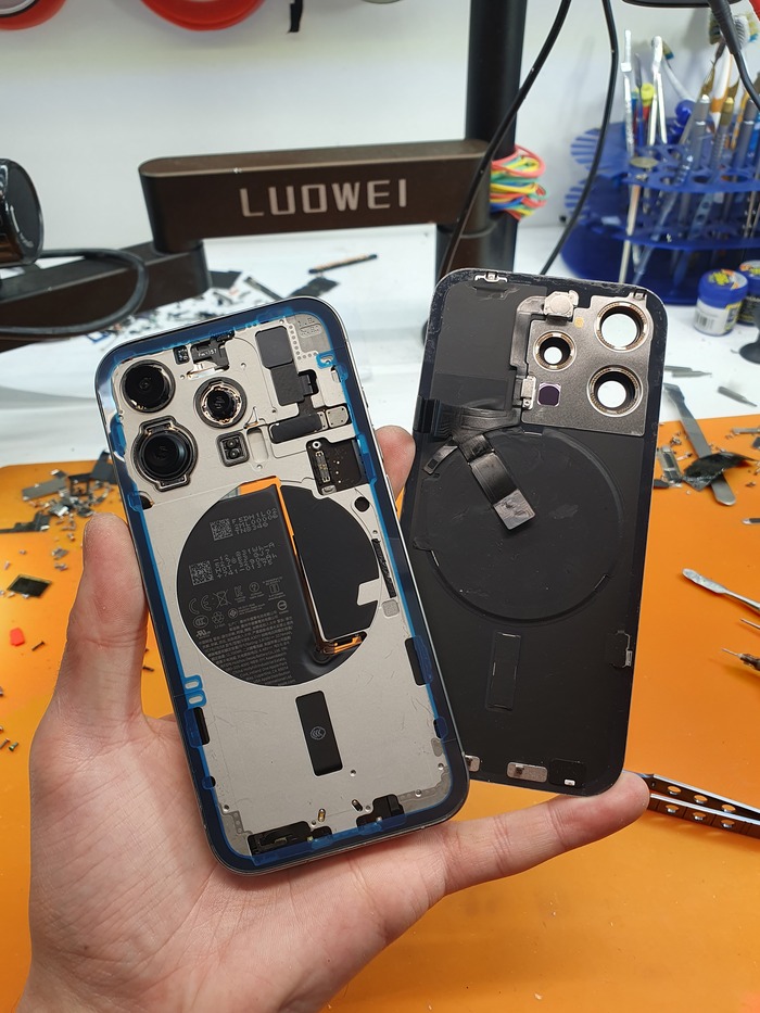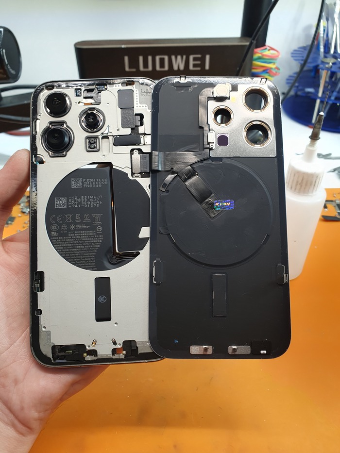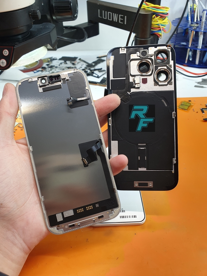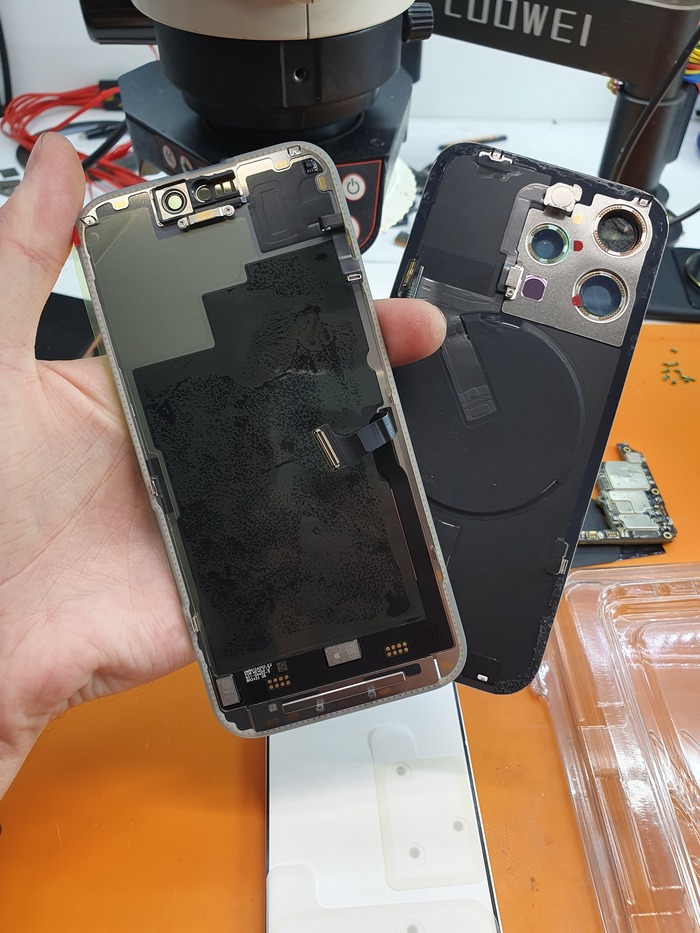 Задник именно чистый без активации найти довольно муторно и долго ждать, поэтому я его не буду привязывать как б.у запчасть, а просто перекину старый шлейф вспышки и микрофона, предварительно перепаяв 4 провода беспроводной зарядки.