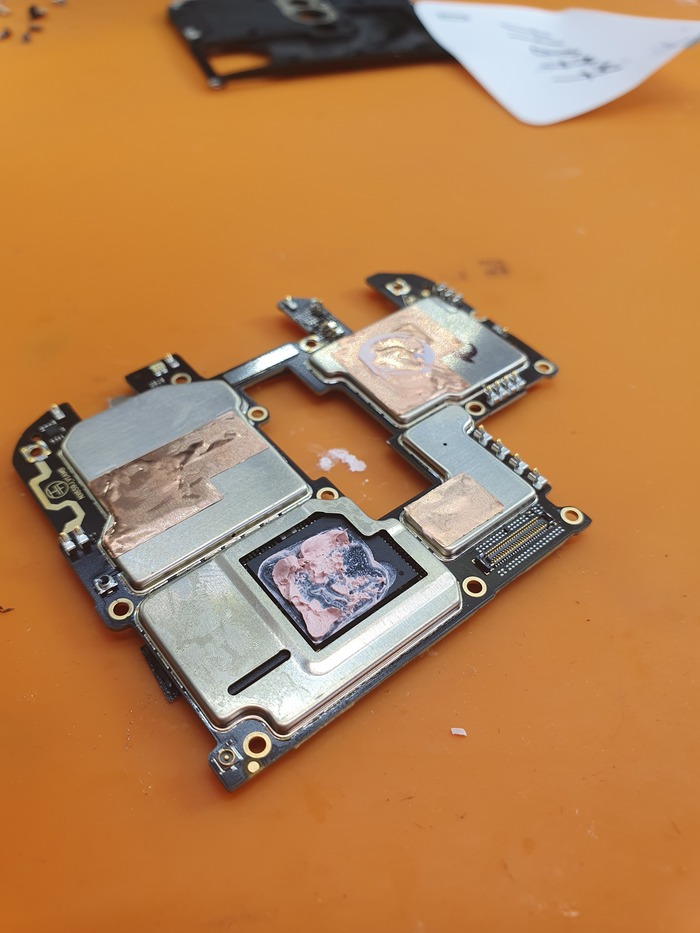 Тёмная зона - потрескавшийся припой и образованная оксидная плёнка на контактах процессора.
