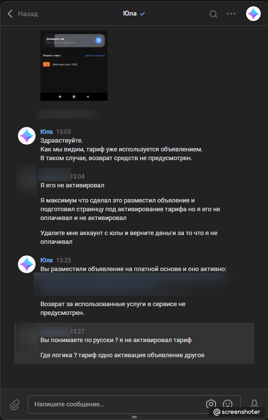 Все эти женщины и мужчины, чьим несуществующим мужьям, жёнам, братьям, сёстрам, сыновьям и прочим родственникам понравился мой товар, начинают писать чуть ли не одновременно. Ну и опять же, все они активно зовут в ТГ или WhatsApp, потому что у их родственника/цы, разумеется, нет аккаунта на “Юле”. И номер телефона этого человечка сразу присылают, не дожидаясь моего ответа. Нетрудно догадаться, что будет, если написать по указанному номеру.