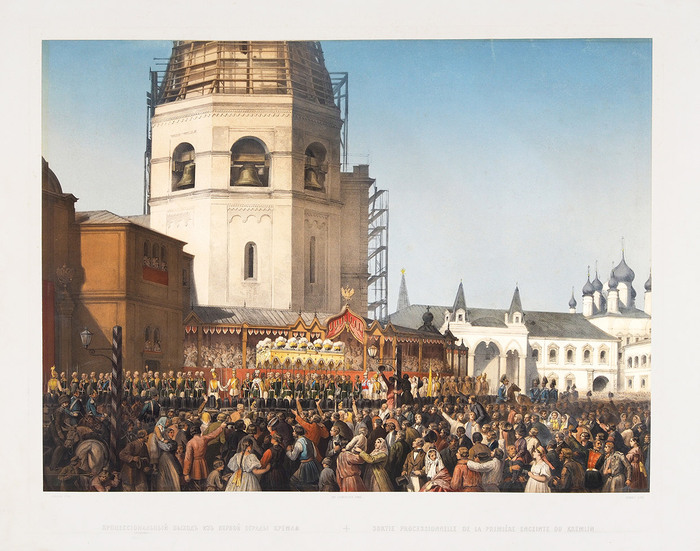 Шедевр Зичи и Тимма из коронационного альбома: лист 28 "Процессиональный выход из первой ограды Кремля".
