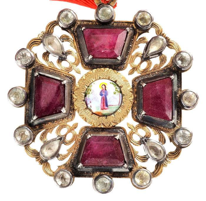 Представлен на торгах и один из первых орденских знаков Святой Анны - Орден Cвятой Анны II степени (капитульный образец, Россия, 1797-1801 гг.), выполненный из золота, рубинового стекла и эмали, на оригинальной орденской ленте.