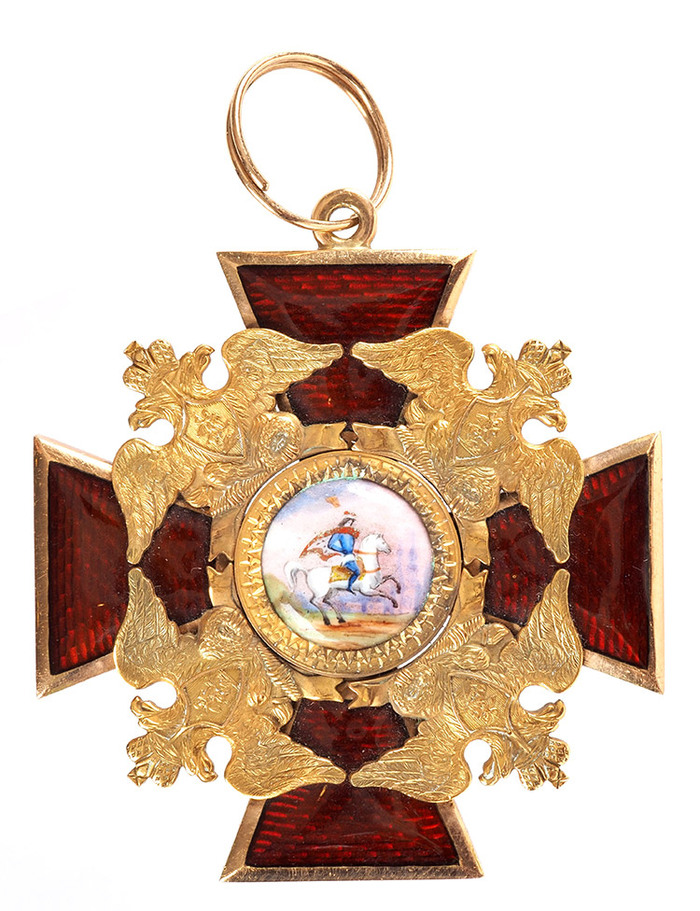 Почти во столько же на старте оценен Орден Святого Георгия II класса (капитульный образец, Россия, Санкт-Петербург, фирма «Кейбель» или «Никольс и Плинке», 1880-е гг.) из золота и эмали, весом 25 грамм.