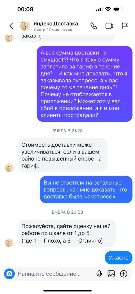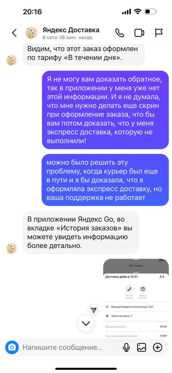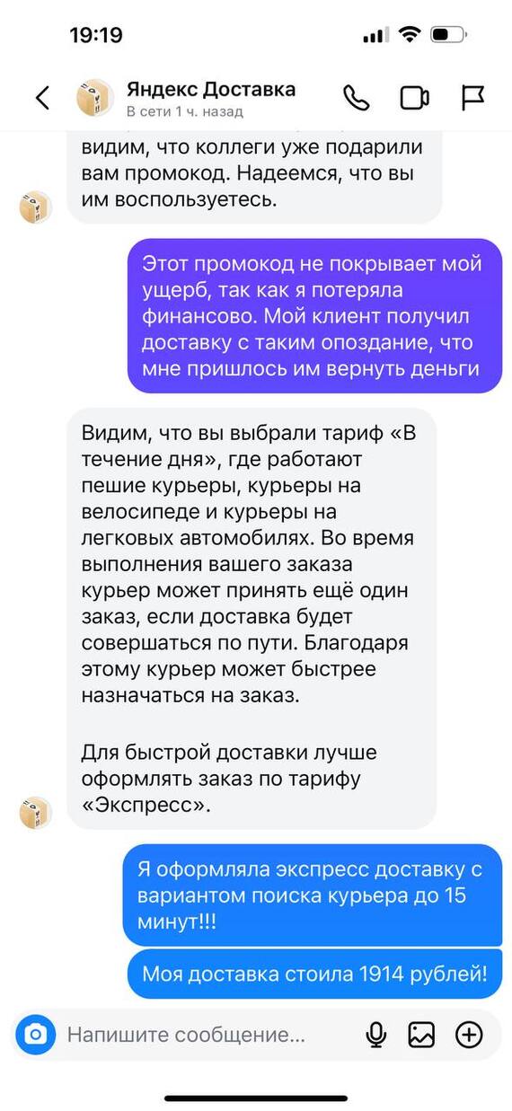 "Служебная проверка по факту будет проведена руководителем ОР ПБ "Пресня" ООО "Инстамарт Сервис" Лобановым Дмитрием Ерофеевичем в течение 90 дней. Курьеру Петренко Юрию Анатольевич, выполнявшему заказ Н067509873456 выписали штраф (strike) в размере суммы заказа. Штраф сохранится до момента завершения проверки или бессрочно, если факт нарушения правил аннулирования заказа подтвердится. Диспетчер Звягинцева Надежда Павловна уволена из ООО "Инстамарт Сервис" за обход правил сервиса в отношении утилизации заказа". После того, как указанный срок прошёл, пришёл следующий ответ: "Отдел Ревизии передал обращение курьеру-диспетчеру участка Магомедову Хасану Узакбаю-оглы, выписано требование провести со старшим курьером участка Москва-Басманная Петренко Юрием Анатольевичем повторный инструктаж по аннулированию заказа в случае отказа или неответа/недоступности клиента. Повторное нарушение приведёт к деактивации учётной записи и расторжению договора с курьером в одностороннем порядке. Штраф (strike) назначен бессрочно, безапелляционно"