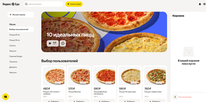 Официальный сайт: 10 Идеальных Пицц на Яндекс Еда