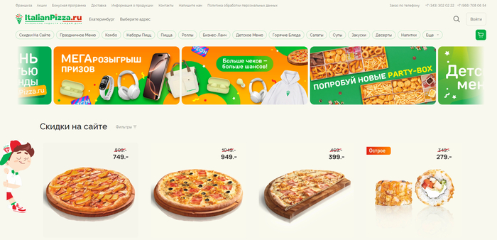Сервис Pizza Hut в России — это сеть пиццерий, ориентированная на доставку и обслуживание в ресторане, с акцентом на семейный формат. Меню включает пиццу, римскую пиццу, закуски, бургеры, десерты и напитки. Доставка осуществляется по часовым зонам, в Москве и Санкт-Петербурге стоимость доставки составляет 249 рублей, а при заказе от 890 рублей она бесплатна. Оплата возможна наличными, банковской картой курьеру или онлайн на сайте. Одна из важных функций — бонусная система: заказы дают баллы, которые можно накопить и затем использовать в оплату следующих заказов.
