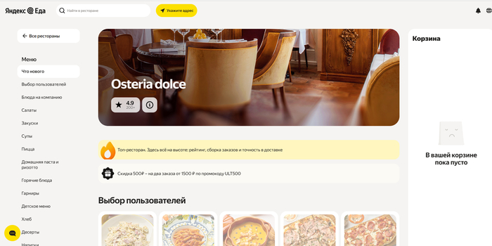 Ollis – сервис радует клиентов не только разнообразным меню, но и быстрой доставкой в пределах 40–50 минут.