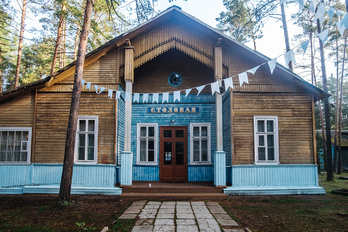 Крайне необычное архитектурное решение, первый раз мне доводилось видеть что-то подобное. При этом, сам пионерский лагерь относительно новый и был построен незадолго до развала СССР. Очень жалко, что пропадает. Окажись этот лагерь поближе к городу из него могла бы получится отличная база отдыха…