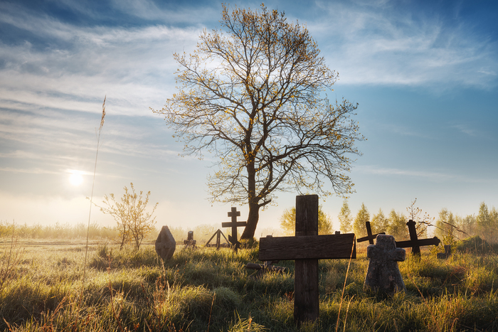 Дело шло к закату. На этой ноте мы доехали до разрушенного моста через реку Великую. Неподалеку – воинское кладбище, а еще дальше, где-то за деревней – крест святой Ольги, туда мы не добрались.