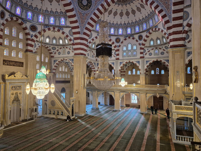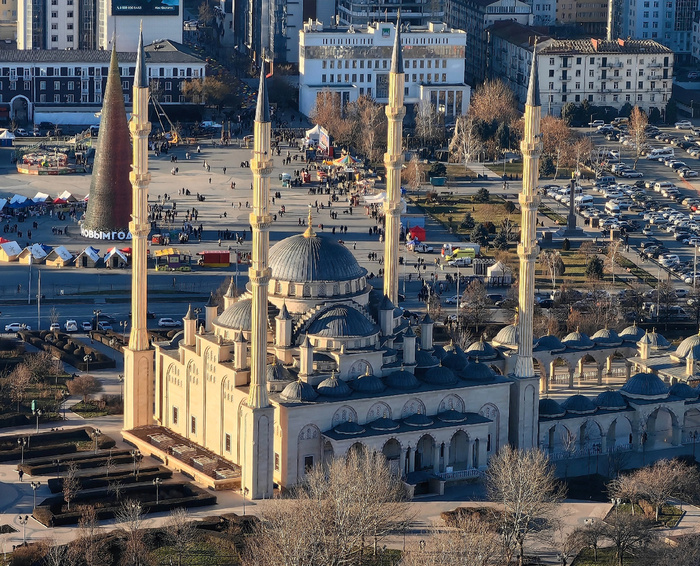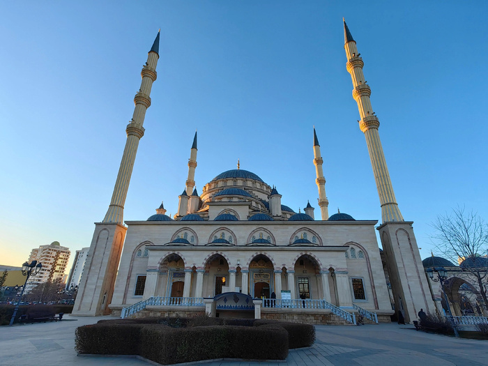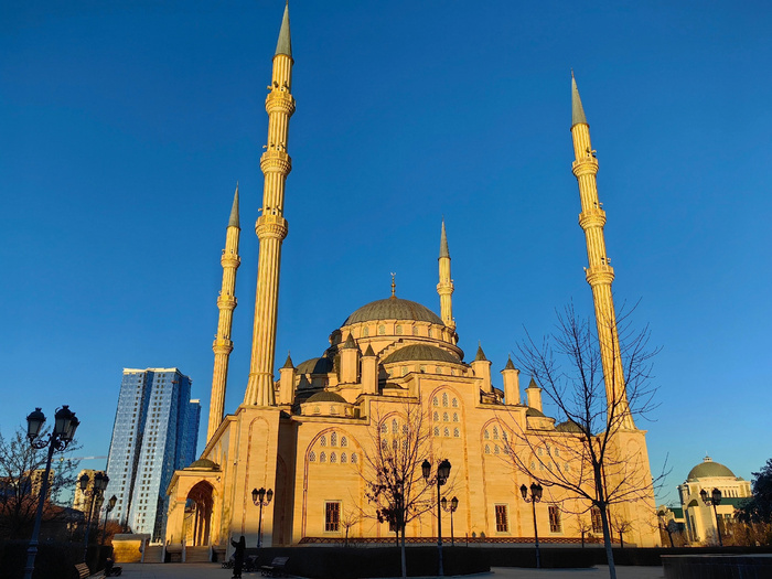 Будет символично начать прогулку с посещения мечети «Сердце Чечни». Проект сооружения разработали турецкие архитекторы, которые вдохновлялись знаменитой Голубой мечетью в Стамбуле. В интерьерах использованы белый мрамор, кристаллы Swarovski и золотое напыление, а в дизайне 36 люстр считываются отсылки к формам важнейших святынь ислама. Вокруг мечети разбит красивый парк с фонтанами, лавочками и необычными деревьями.