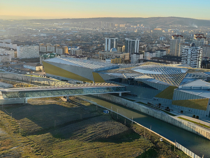 Обратите внимание на здание Национальной библиотеки, напоминающее книжный стеллаж, а также на Музей Чеченской республики, который легко узнать по высоким башням