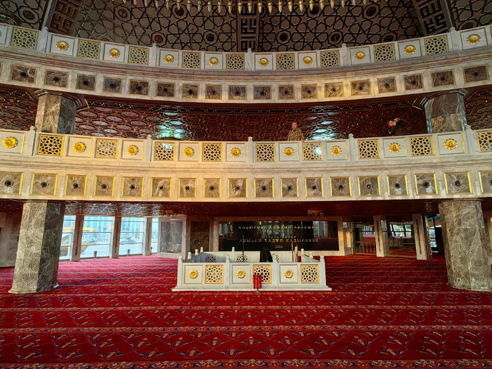 Через дорогу от мечети стоит Дворец культуры имени Дагуна Омаева. Нарядное двенадцатиэтажное здание с куполом и портиком названо в честь известного чеченского актёра.