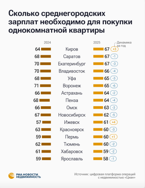 Зарплаты ниже 170 тыс. ₽ в месяц достаточно лишь в одном мегаполисе — Волгограде. Здесь цены ниже всех миллионников, и 3-хкомнатная квартира в среднем обходится в 7,3 млн ₽. Я очень рад за волгоградцев (но не от всего сердца😁).