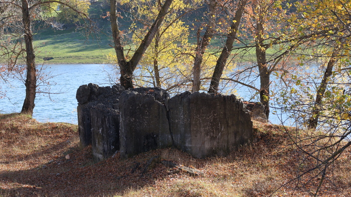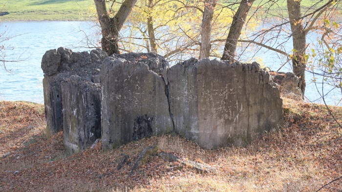 Пустые амбразуры своими мертвыми и холодными глазами смотрят в поросшую кустарником низину, они больше не наводят страх даже на безоружных, беззащитных людей, спокойной прогуливающихся перед этими бойницами, откуда когда-то разносился смертоносный огонь пулемета, оборвавший жизнь сотни таких же как и они...
