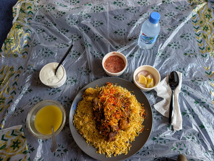 Плов с козлятиной на районе называют Мачуба. Порцию доесть не смог, но было очень вкусно. После обеда совсем разморило, и я пошел спать.