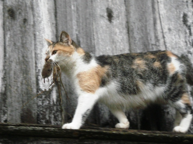 Задыхаясь от восторга, я хвалила кошку, и очень просила ее отойти от двери, звала сына, искала веник, потому что прошлый дар мы вылавливали мышеловкой, несмотря на наше кошачье трио.