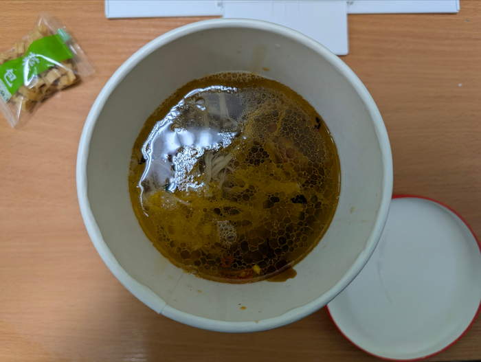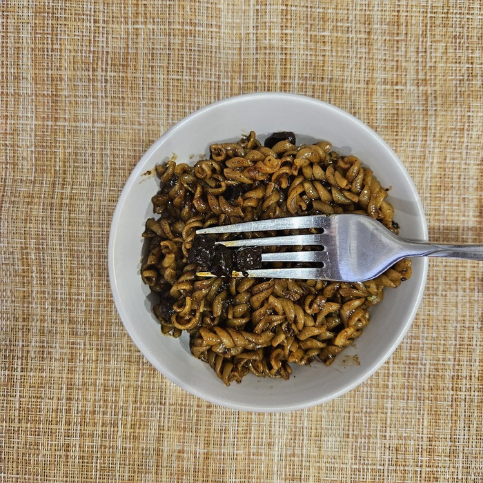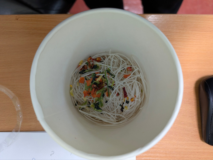 Получилось ну очень вкусно, наелся одной тарелкой. Приехала супруга, с самого порога спросила: а чем это так вкусно пахнет? ну и умяла все остатки, правда без зелени, я её досконально выгреб из холодоса. Тоже понравилось. Ну что сказать? заваривать просто по инструкции не пробовал, возможно действительно весь толченный горох не успеет размякнуть. Но и в походе я всё это в котелке варю, а не из чайника завариваю. В общем, друзья, рекомендую начать учиться готовить, а то когда съедите от мамы своей, то голодной смертью помрете, когда деньги на фастфуд закончатся.