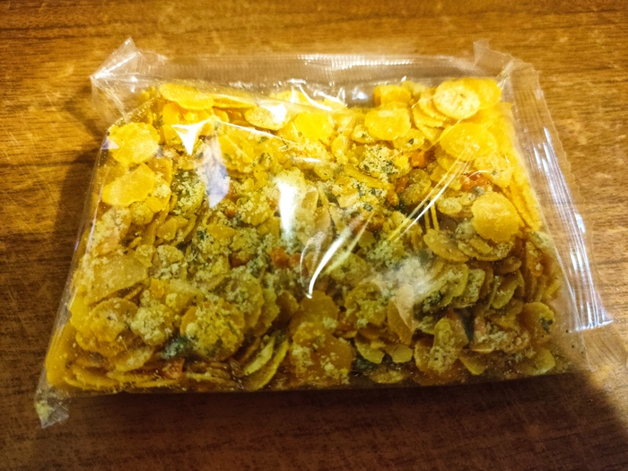Ради эксперимента попробовал сухомятку. Горох толчёный и уже весь в специях, можно даже такие чипсы делать. На вкус как новый вид чипс лейс. А кстате, кому то уже приходила идея гороховых чипс? вполне неплохо.