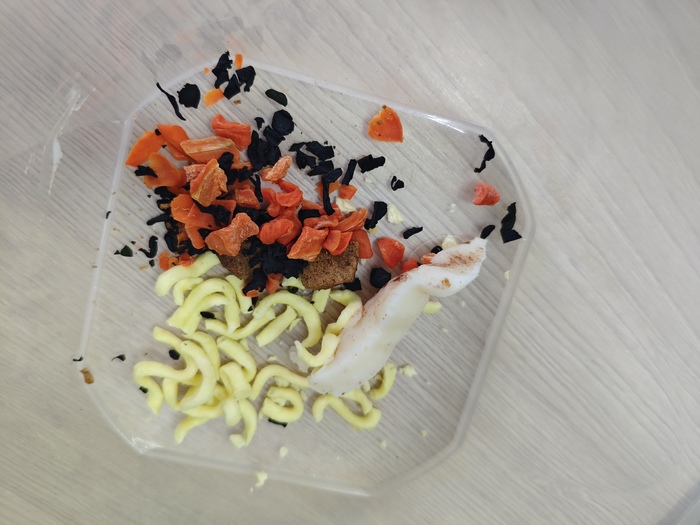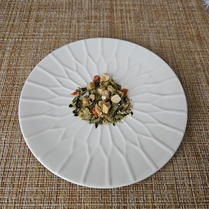 Пакетик сушёных овощей. Достаточно богатый. Тут вам и капустка, и морковь, и кукурузка. Также юба и кунжут.