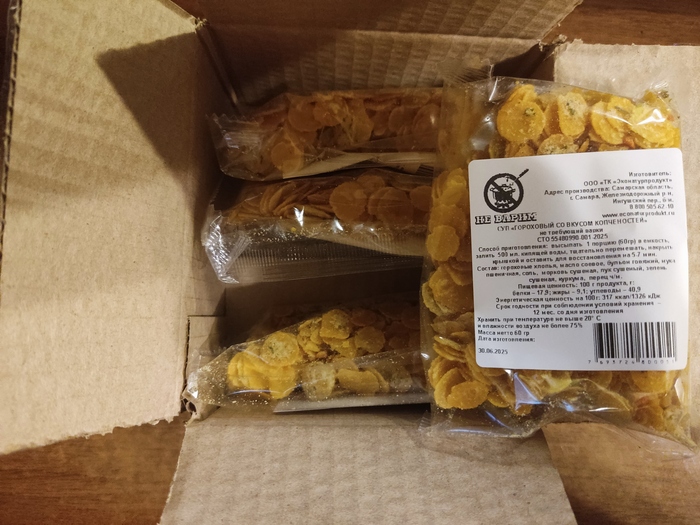 А потом и сам засомневался. А что если качество испортилось, и он стал вот реально таким, как описывает художественным языков вышеупомянутый автор. Да не, хрень какая-то, но проверить надо. Захожу на озон, делаю закупку 5 шт горохового, сел и жду. прошёл 1 день и Гороховый сублимат доставили. В коробке, надежно упакованный, 5 штук в комплекте. За всё это я заплатил 193 рубля, т.е. 39 рублей за пачку.