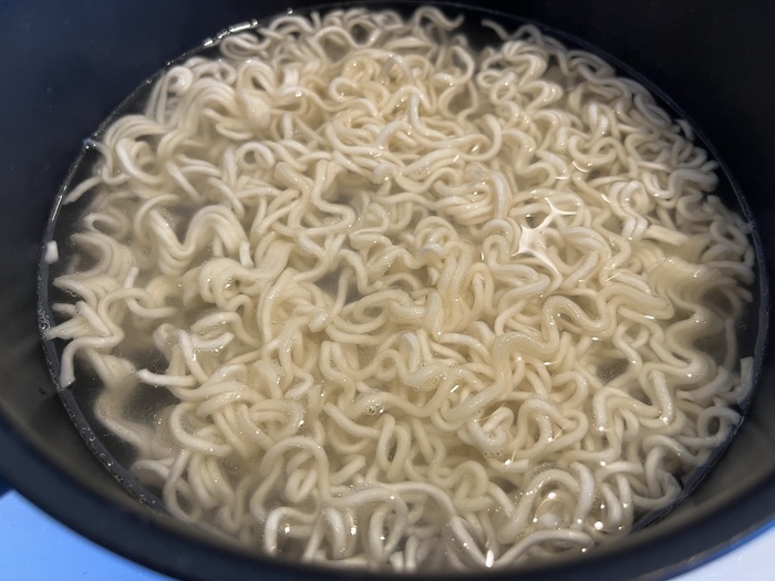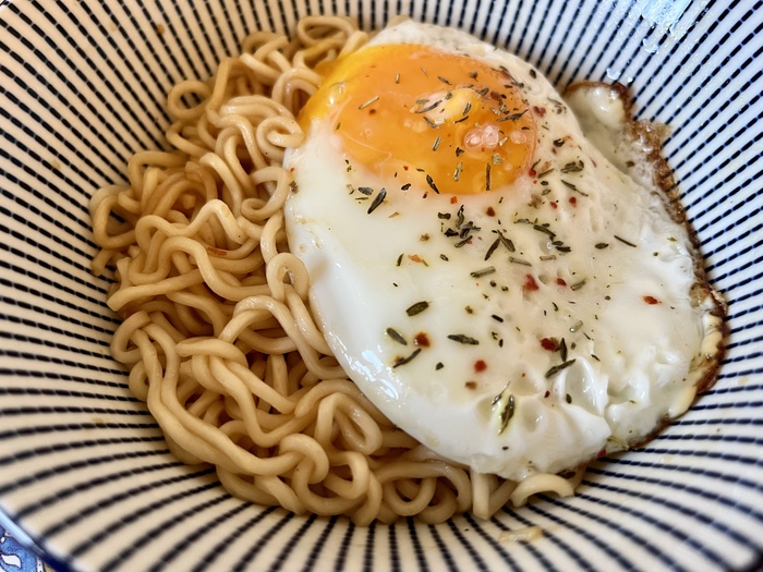 Как ни странно, это здорово повлияло на результат - лапша как положено размякла, а бульон приобрёл аромат и даже цвет откуда-то взялся, не такой яркий, как на упаковке, но хоть что-то. До этого-то был вообще вода водой.