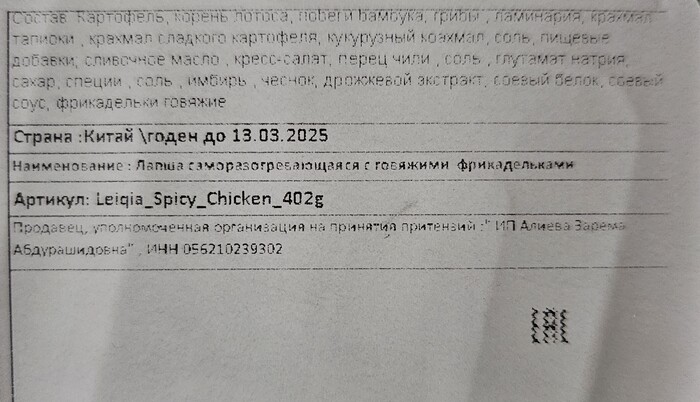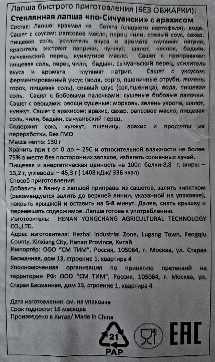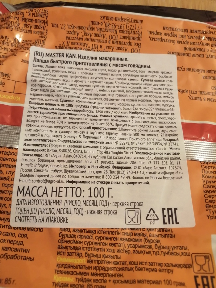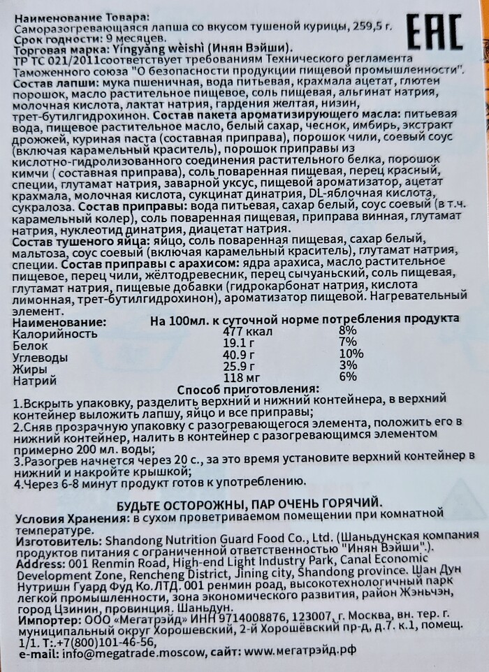 Импортёр постарался с переводом и снабдил лапшу очень подробным и качественным стикером. Я даже не стал его отклеивать и полностью ему доверился.