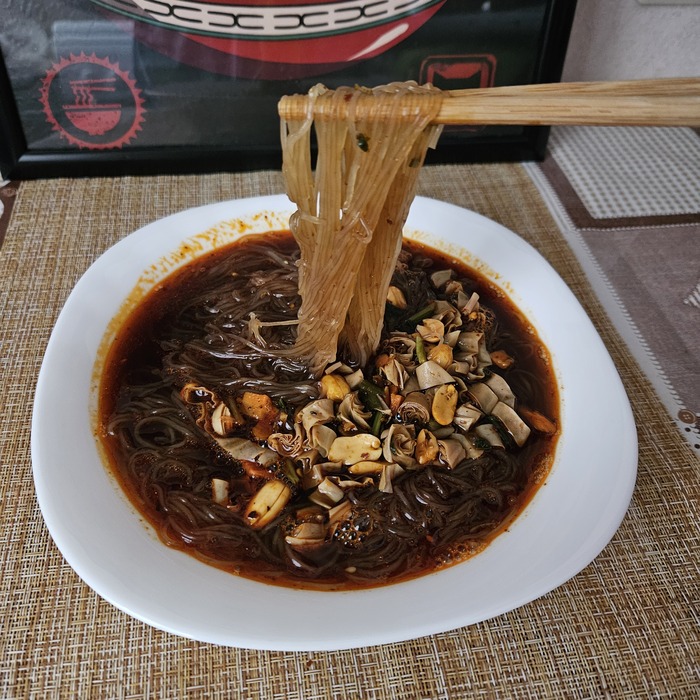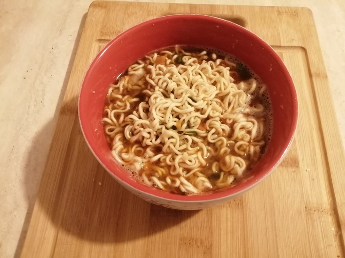 Здравствуйте, друзья! Привет, Пикабу! Снова с вами на связи моя лаборатория и очередное исследование. Вся интрига по названию закончилась уже в заголовке, поэтому приступаем сразу к осмотру и описанию. Но сначала для ЛЛ: капец, как вкусно! Но дорого. Итак, сегодняшний мой подопытный приехал ко мне из Китая с помощью всем известного ягодного маркетплейса и обошёлся в 369 рублей. Упаковка стандартного размера для подобной лапши. Красного цвета, одета в бумажную рубашку. Опять похвалю ВБ за то, что не испортили и не измяли товар в процессе доставки.