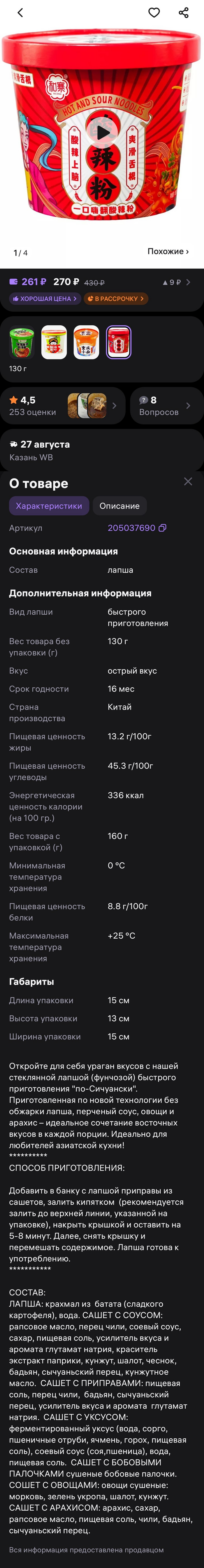 Также прикреплю скрин с ВБ и ссылку, на случай, если кого-то заинтересует данный продукт. https://www.wildberries.ru/catalog/228410673/detail.aspx