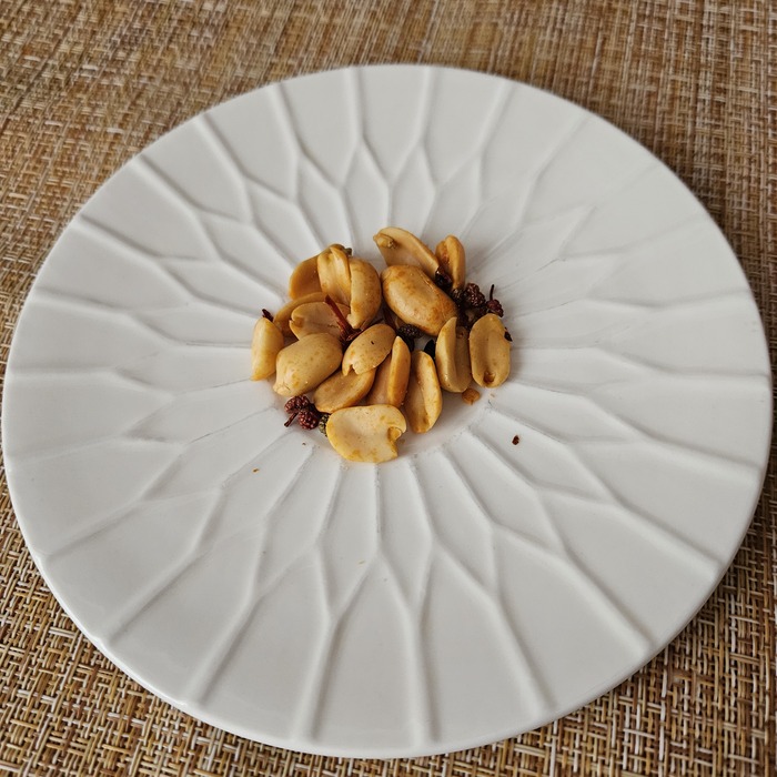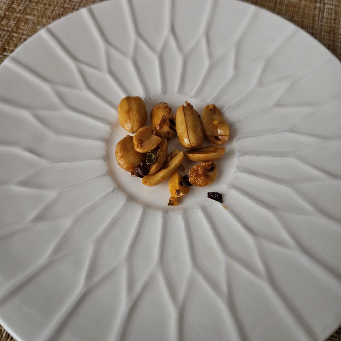 В последнем пакетике мой любимый арахис со специями. Тут все как и в прошлом обзоре. На арахисе тонкий слой глазури, с ним полоски красного перца и горошины сычуаньского.