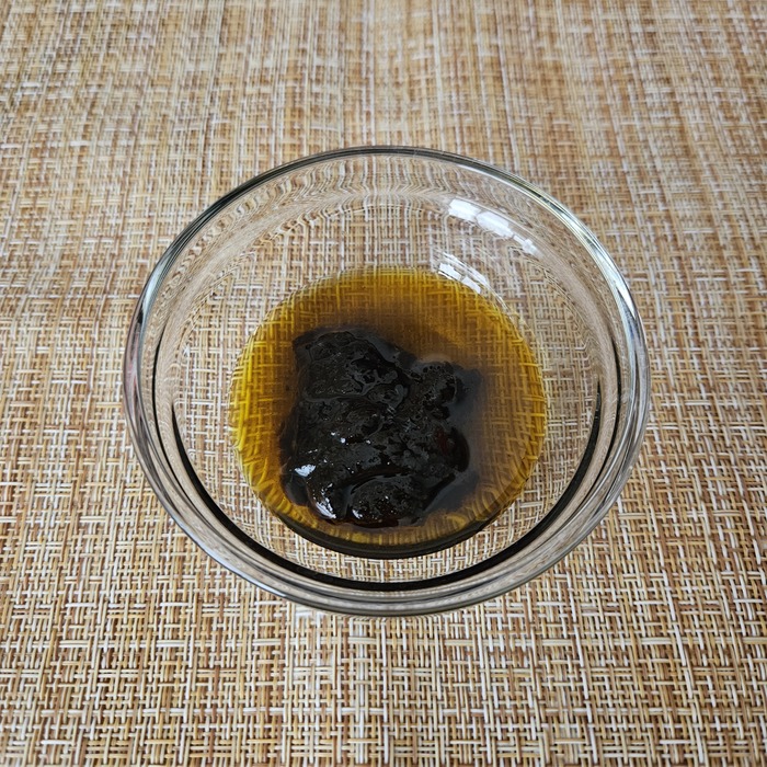 Следом масляный соус. Сильно солёный, с мясным вкусом. В меру пряный, не острый.