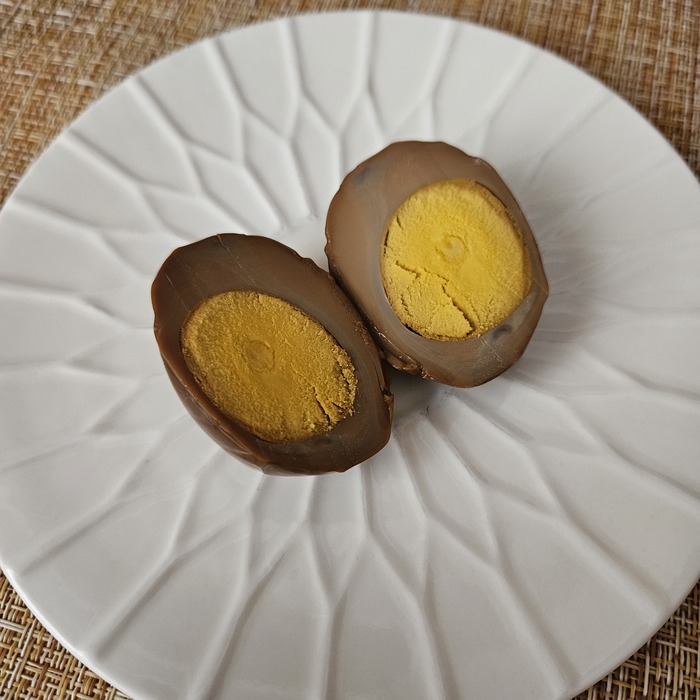 Маринованное яйцо больше, чем обычно. И, мне кажется, темнее.