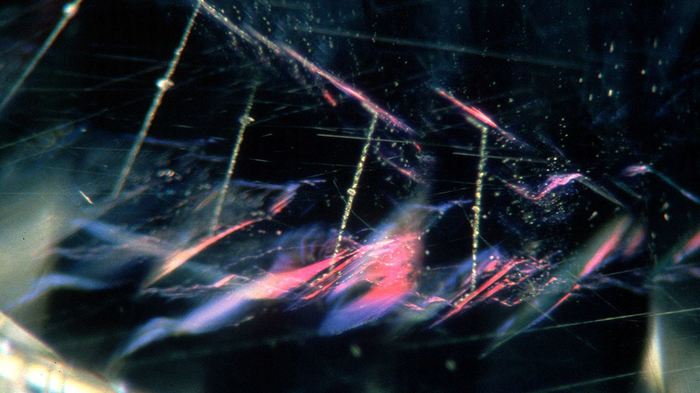 Процесс, известный как поверхностная диффузия, кардинально улучшает цвет бледных и практически бесцветных сапфиров. Ограненные камни кладутся в тигель, заполненный оксидами алюминия, титана и железа. Когда этот тигель нагревают до высоких температур, молекулы оксидов титана и железа проникают в кристаллическую решет-ку корунда. При этом камни практически всегда заметно повреждаются, и их нужно заново полировать. Цвет силь-нее всего проявляется вдоль стыков граней и вокруг рундиста. Так получается характерный "паутинчатый" узор, который мы можем увидеть, исследуя обработанный поверхностной диффузией камень иммерсионным методом. Повторная полировка может полностью удалить цветные участки с некоторых граней, при этом получаются "дыры в окраске" типичный побочный эффект поверхностной диффузии. Такие камни проявляют и нормальные признаки последствий тепловой обработки - переделанные рундисты, участки напряжения вокруг расплавленных включений и некоторые другие изменения свойств.