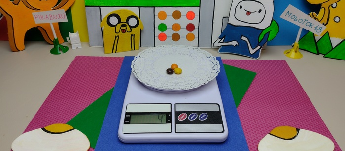 взвесить шоколадные драже по одной не получилось ,но зато 3 штуки весят ровно 4 грамма в итоге одна весит чуть больше грамма.