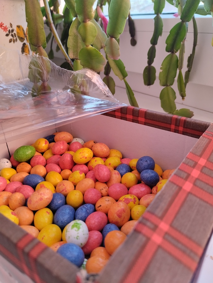 ВКУС - 10 БАЛЛОВ (МОЛОЧНЫЙ ПЕРЕКРЁСТОК) ( цветная скорлупа очень приятно хрустит, сладкие ,правда конфетки очень сильно красятся,я потом еле морду отмыл от последствия неаккуратности кушанья драже)