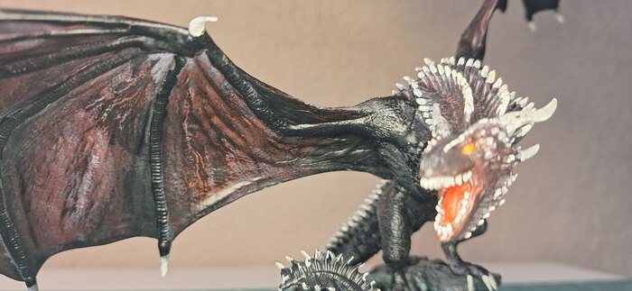 Во имя Дейнерис Бурерожденной было создано сие миниатюрное Чудо, с размахом крыльев около 40-ка см. Воистину, Визерис порадует истинных фанатов "Игры Престолов". А данный экземпляр, как и было обещано отправляется к маме на полку с книгами "Песнь льда и пламени" Джорджа Мартина. 🤗