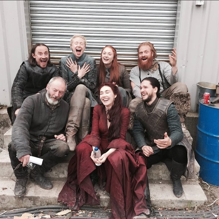 За кадром враги по сценарию могут обниматься и даже дружить, а игра в любовь может перерасти в реальную. В общем, актёры тоже люди, и в жизни они смеются, веселятся и делают забавные снимки. Вот 30 закадровых фотографий со съёмок «Игры престолов».