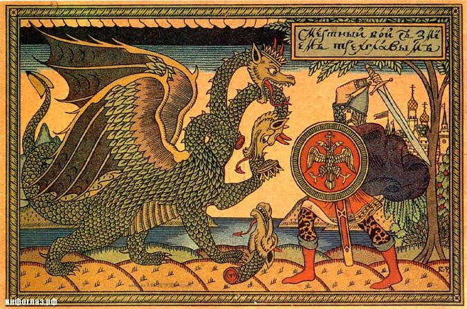 В других версиях Змей — опять-таки аналогично классическому дракону — стережет не границу, а саму сердцевину этой волшебной страны, “держит вахту” при том, что в “тридесятом царстве” самое ценное — сокровища, золотые яблоки, живая вода, а-то и красавица-царевна, местная или же похищенная. Герой — Иван Царевич либо Иван-дурак — должен победить Горыныча в бою, отрубить ему все три головы, а тело сжечь. И быстренько ретироваться, потому что у Змея обычно имеются очень даже мстительные родственнички.