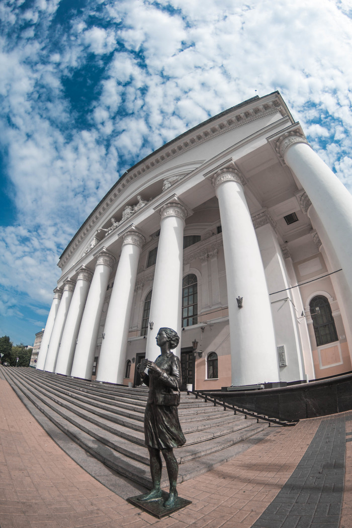 На заднем плане можно наблюдать величественный Донецкий государственный академический музыкально-драматический театр имени М.М. Бровуна. К прекрасному животному была выстроена очередь из детей, но я терпелив и успел поймать момент)))