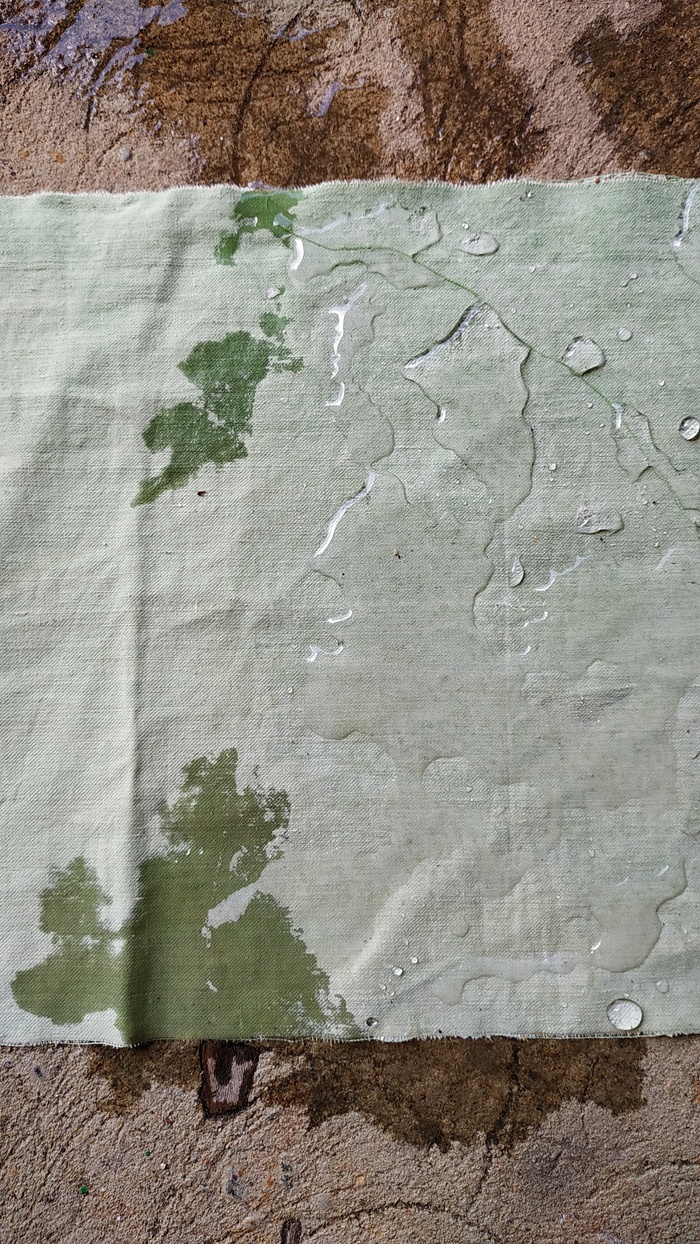 На вид немного отличается, если взять прозрачный герметик, может будет по другому. На ощупь ткань получилась как бы жирная, скользкая, и немного хуже стала гнуться. А как же водоотталкивающие свойства? Об этом я расскажу вам в следующем посте, подписывайтесь. Ладно, пошутил.