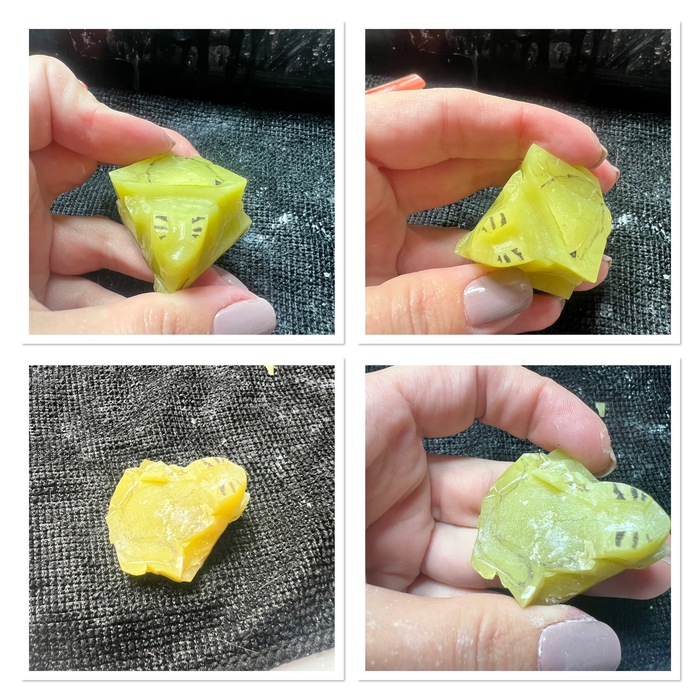 Финальный штрих - шлифовка, полировка, также в этот раз покрыла фигурку смолой в качестве защитного слоя, , т.к. в процессе работы вскрылась внутрення трещина в камне + он все-таки мягкий и кажется, что будет легко царапаться без защиты.